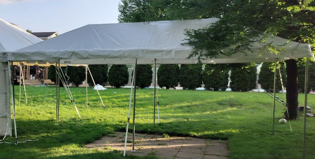 High quality commercial tent, Fire retardant PVC canvas, One 20 ft window wall included.